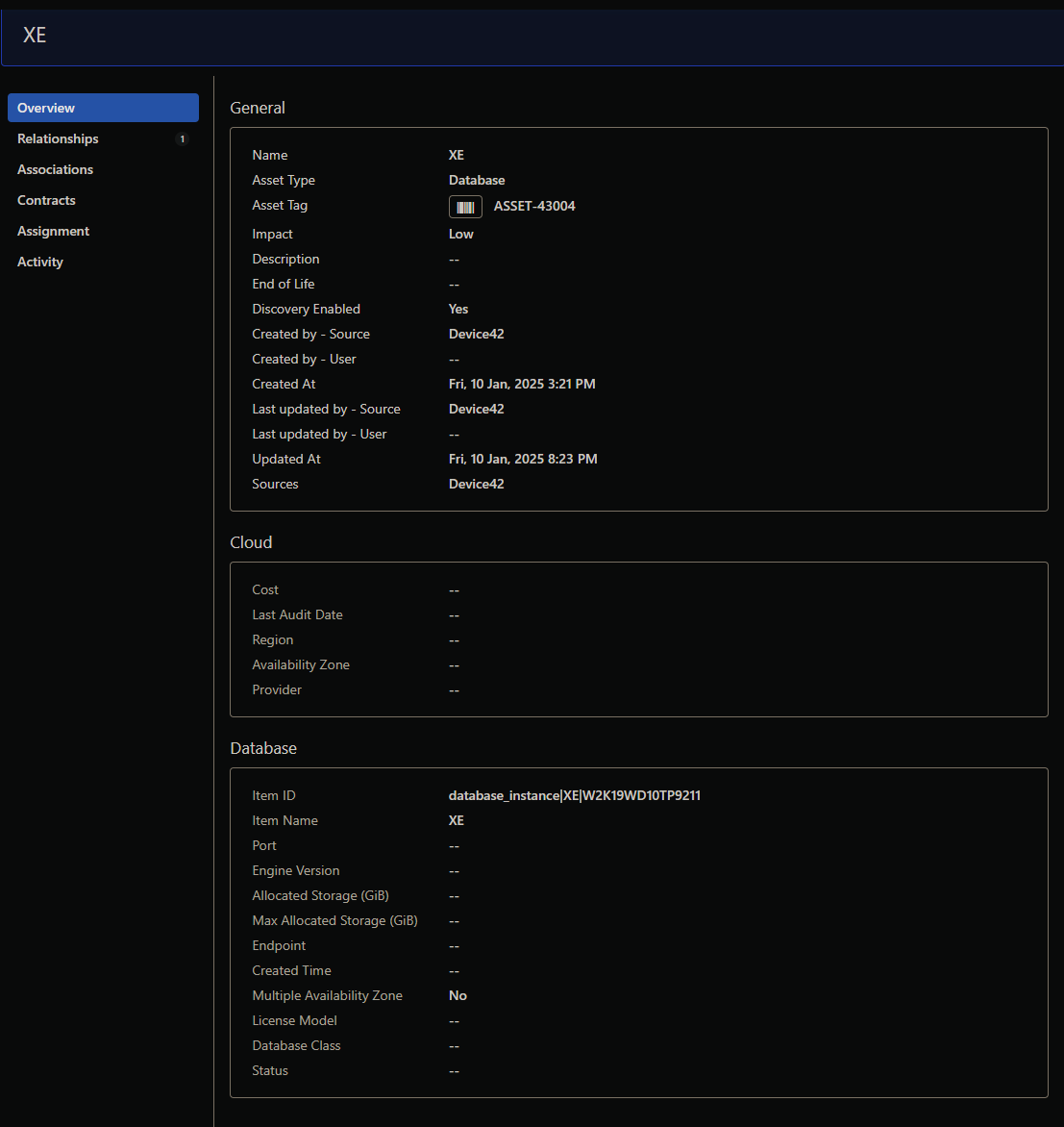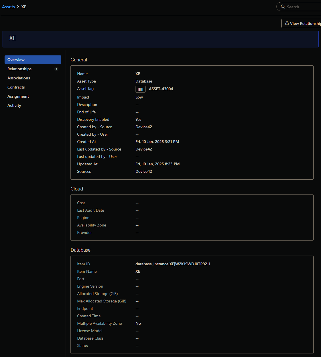 - In order to sync database instances from Device42 to Freshworks, we will need to modify the mapping.xml file by creating a new asset mapping task. We will also create a relationships task to create a relationship mapping in FS between the database instance and the database server from D42.
